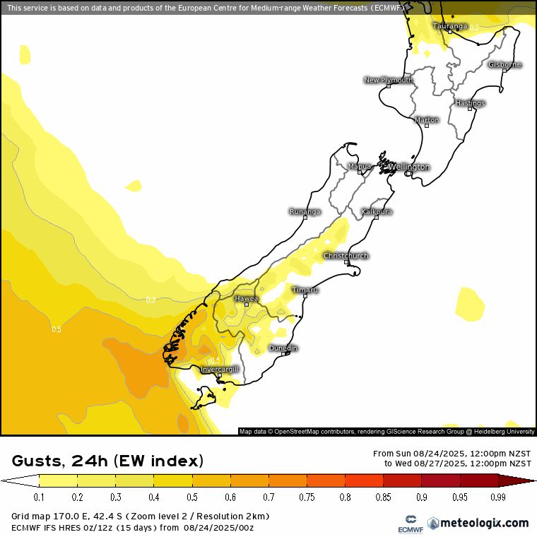 In terms of significant weather impacting the South Island, heavy rain is likely to affect western areas, with Fiordland expected to experience particularly intense downpours. However, the main focus will be on the incoming severe north to northwest winds bringing challenging conditions. On Wednesday, Southland and Otago are set to experience severe wind gusts, especially in regions west of Invercargill and Winton, although much of Central Otago and the Southern Lake District will not be spared from the impact. Wind gusts will begin to increase from late afternoon in the Canterbury High Country, signalling a broadening area of concern.